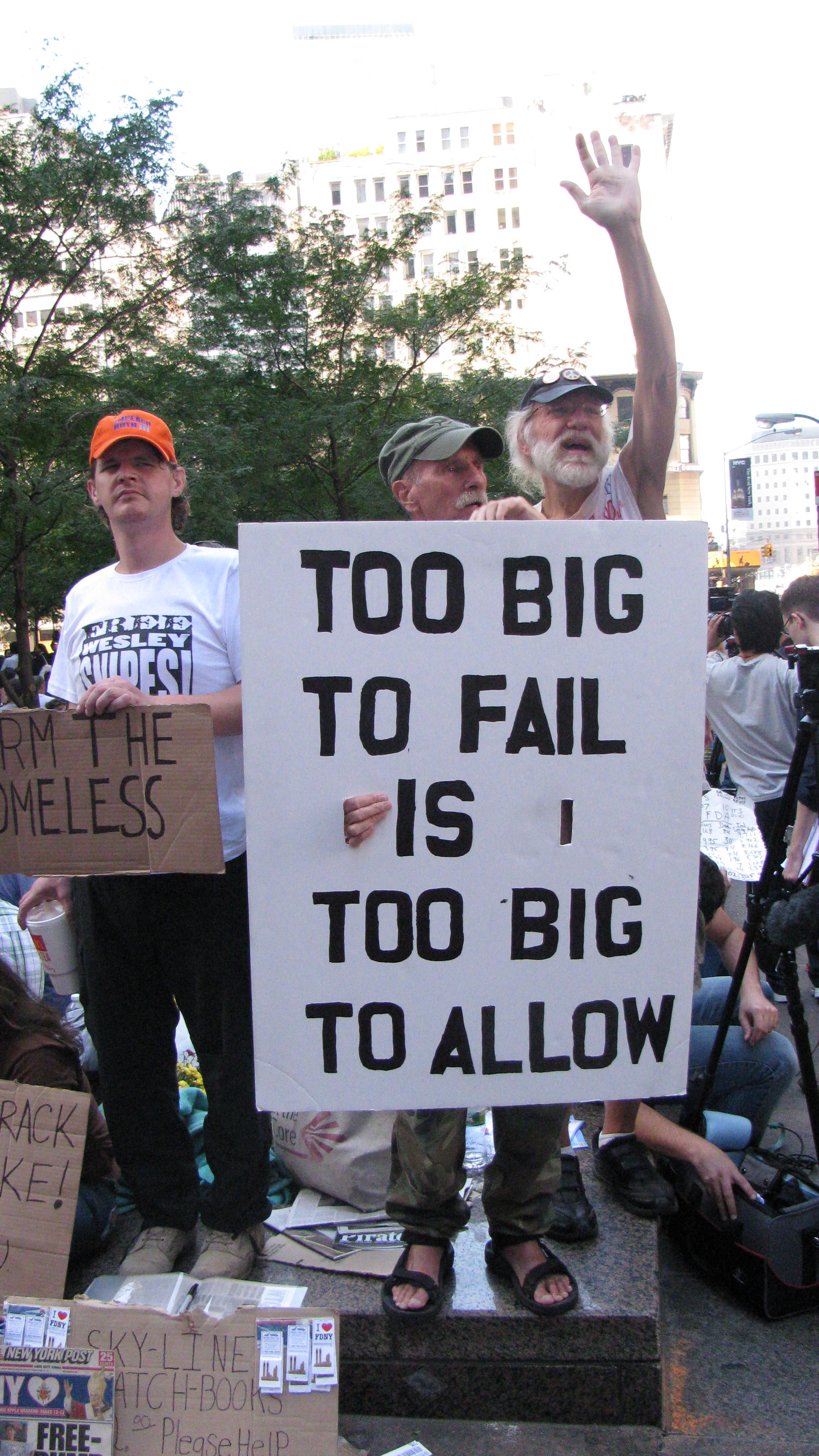 The banks and the investment banks have become the initial target of “corporate greed”.   Why banks?  From about 2002 through 2008, the banks and investment banks had collectively issued or bought millions of the bad “subprime” mortgages  and then packaged these loans and sold them to our pension funds, insurance companies and small local banks.  During this period, these large banks earned billions in profits.  However, when the market for this product collapsed and these banks were caught with hundreds of billions of these loans in their collective portfolios, they relied on the governement for close to a trillion dollar bailout.  Of course, these bankers paid themselves billions of dollars in bonuses despite huge corportate losses.